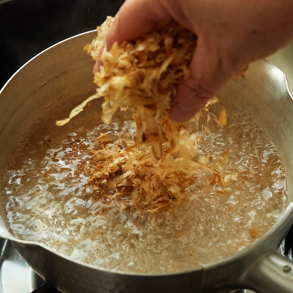 良質ないわし煮干しから、丁寧に頭とはらわたを取り除いたものを真心を込めて薄く削りました。深みのある香りとコクが特徴です。そのままふりかけても美味しくお召し上がりいただけますが、普段のお味噌汁、うどんや蕎麦のおだしにも最適です。沸騰したお湯に入れ、弱火で3分~4分程度煮出してお使いください。